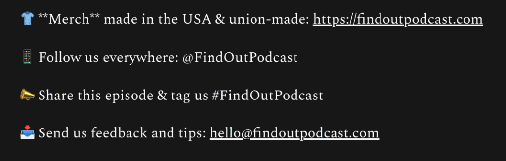 Each Find Out podcast episode includes the host giving a plug for merch at the end. The footer of their episodes even places a link to merch above their social handles.